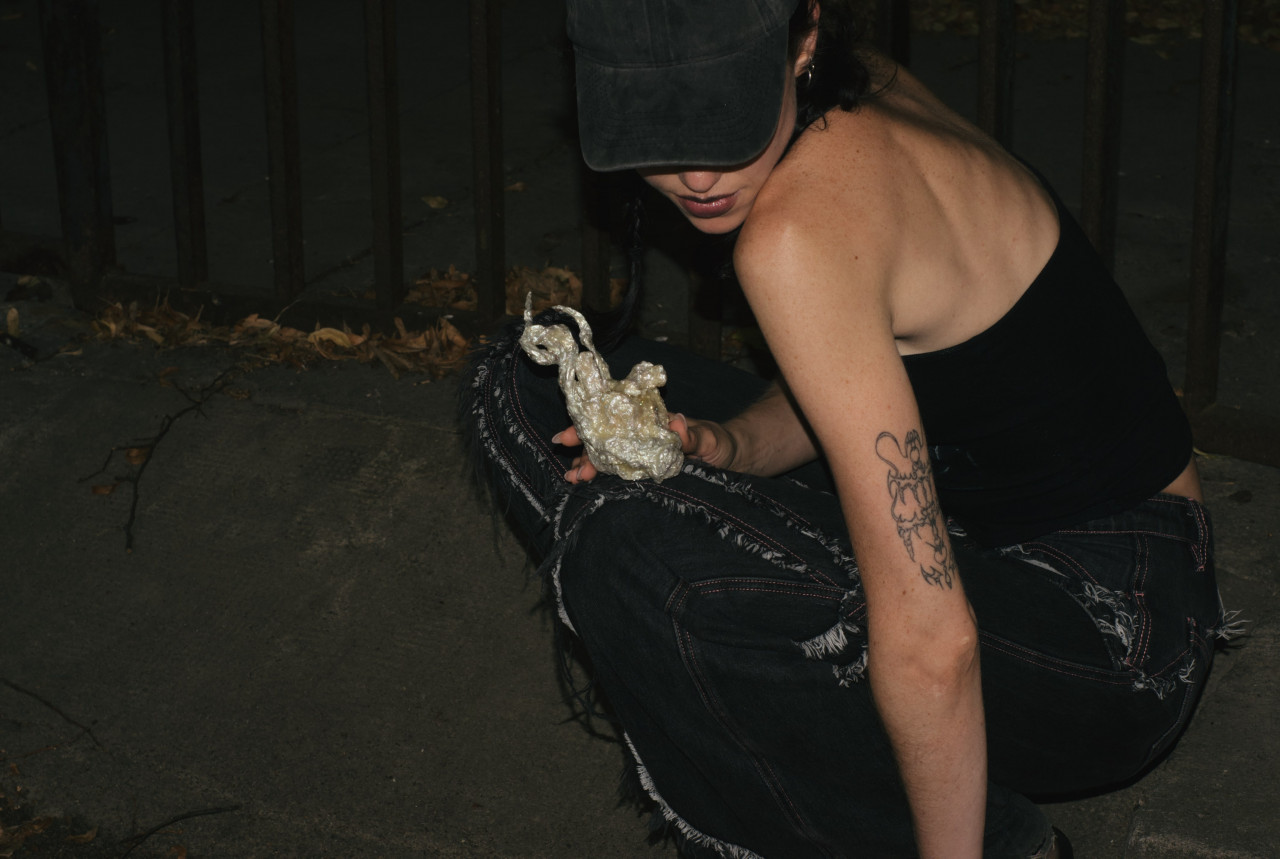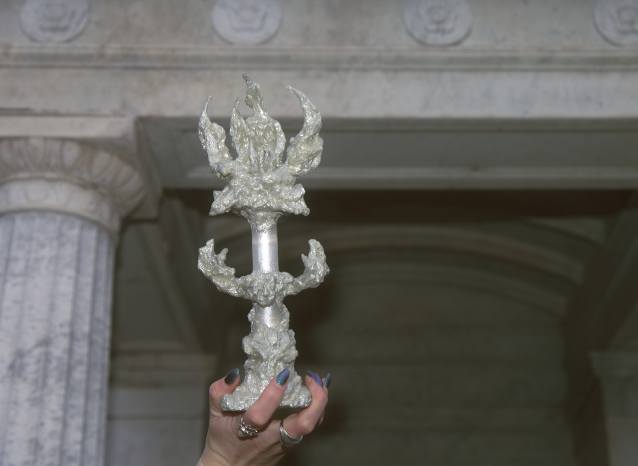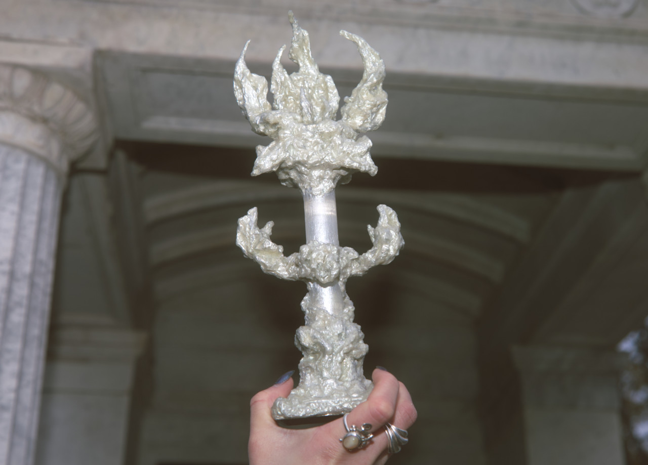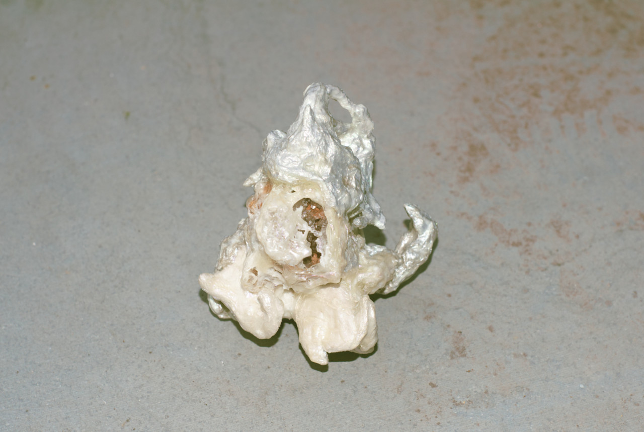 Alcorta's artistic practice fuses mediums including acrylic, organic material, upcycled objects, aluminium and clay. Transcending the boundaries between arts and crafts, her gothic-esque sculptures delve into the intricate role of magicality in ecodoom. Through her art, she explores the allure of sacralising destructive practices and the trust in supernatural forces as a means of collective (self-)deception. Simultaneously, her artefacts interrogate the transformative power of the otherworldly.