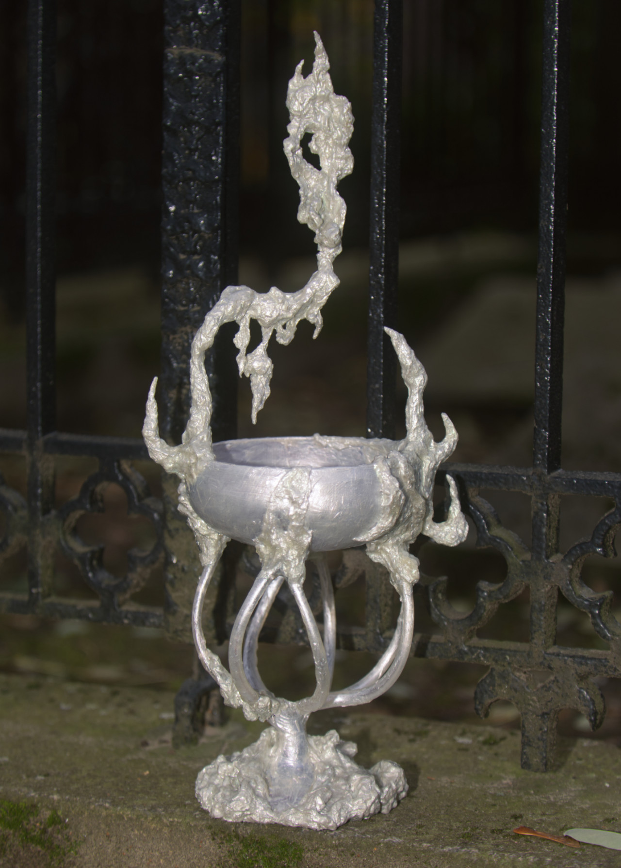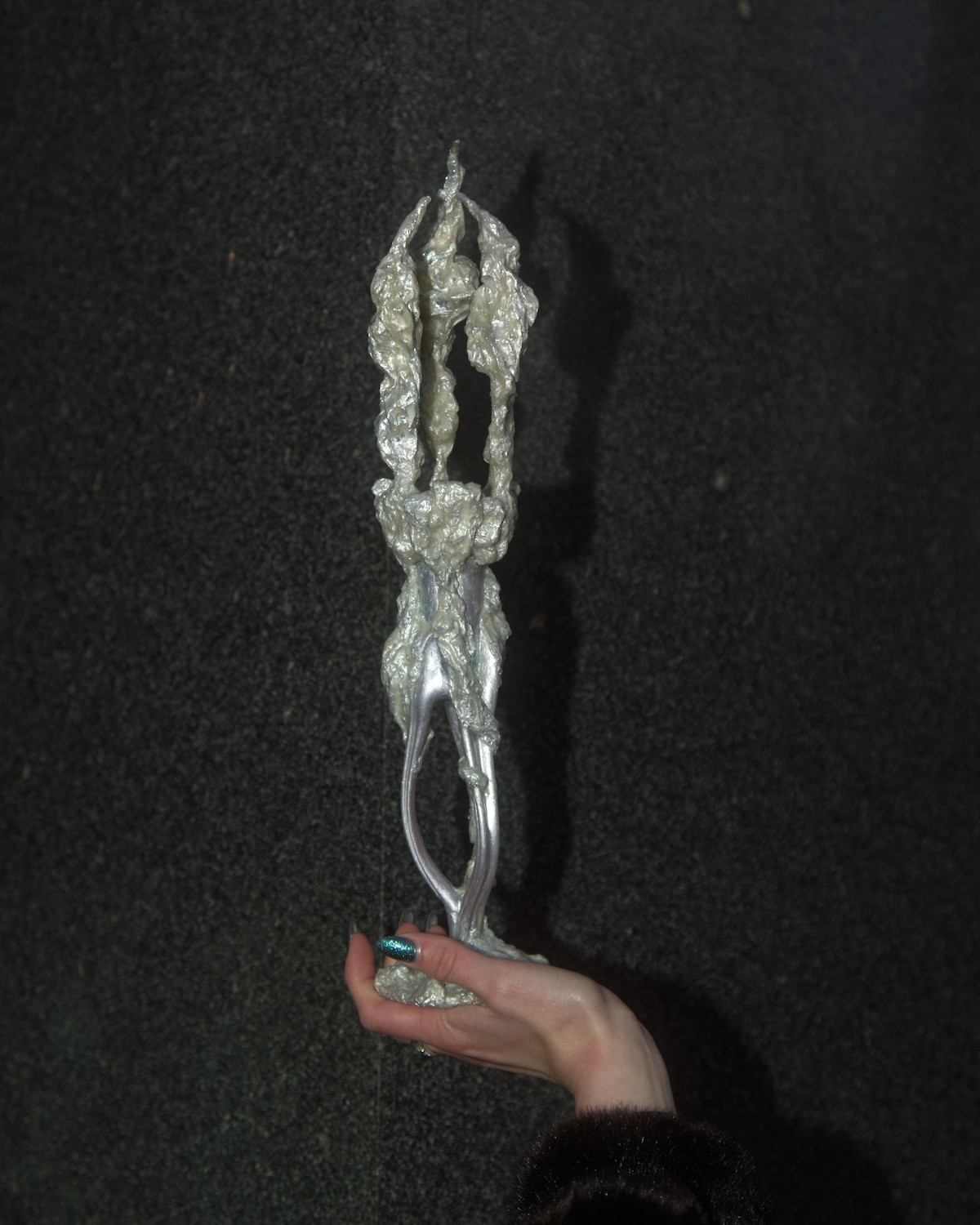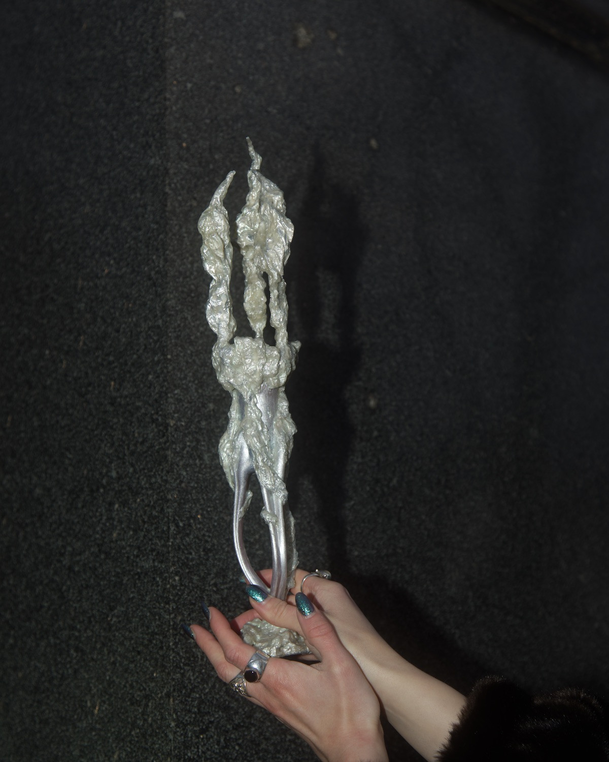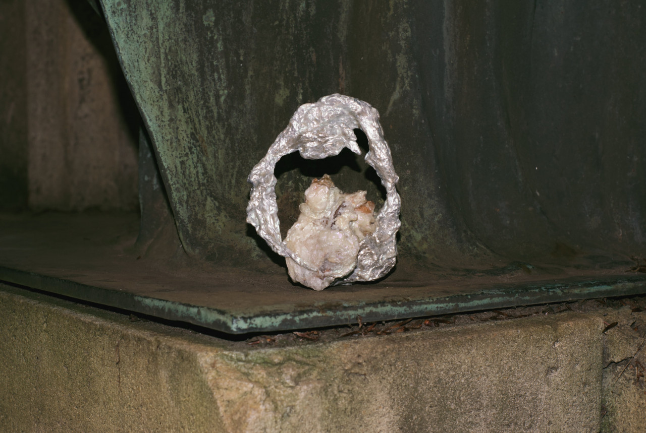 Alcorta's artistic practice fuses mediums including acrylic, organic material, upcycled objects, aluminium and clay. Transcending the boundaries between arts and crafts, her gothic-esque sculptures delve into the intricate role of magicality in ecodoom. Through her art, she explores the allure of sacralising destructive practices and the trust in supernatural forces as a means of collective (self-)deception. Simultaneously, her artefacts interrogate the transformative power of the otherworldly.
