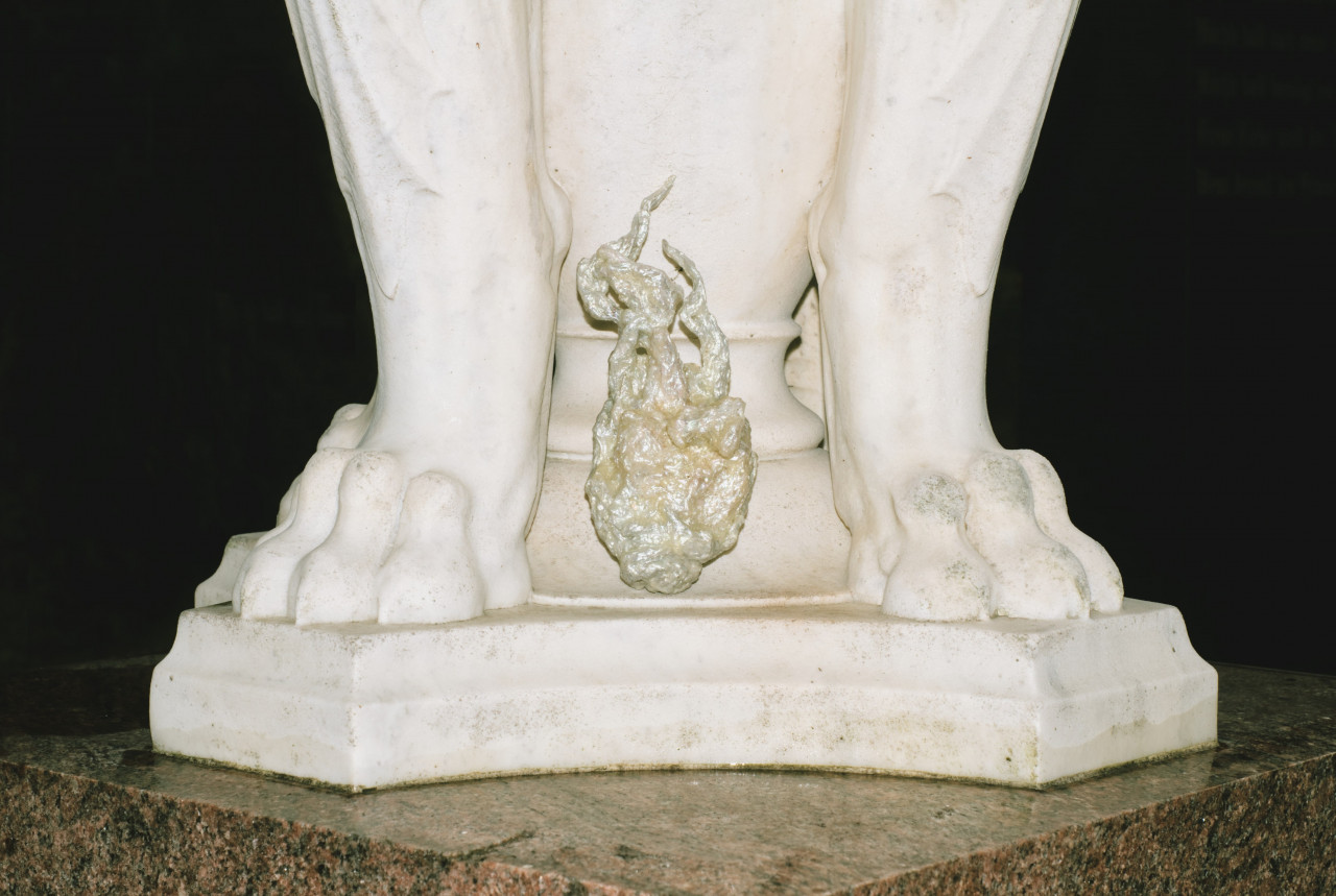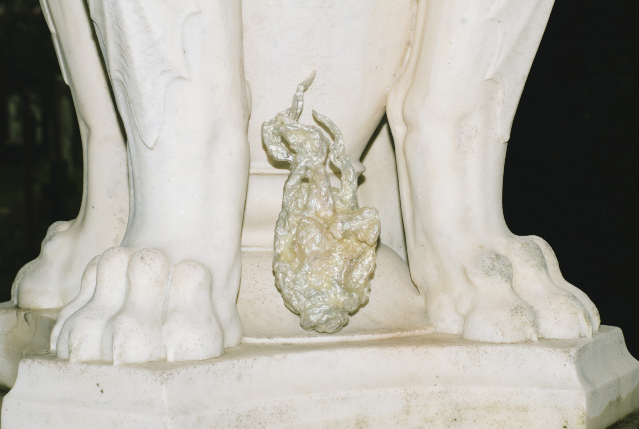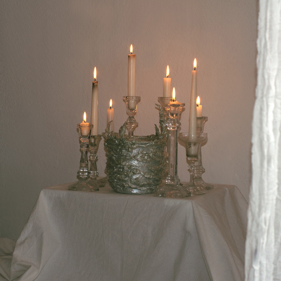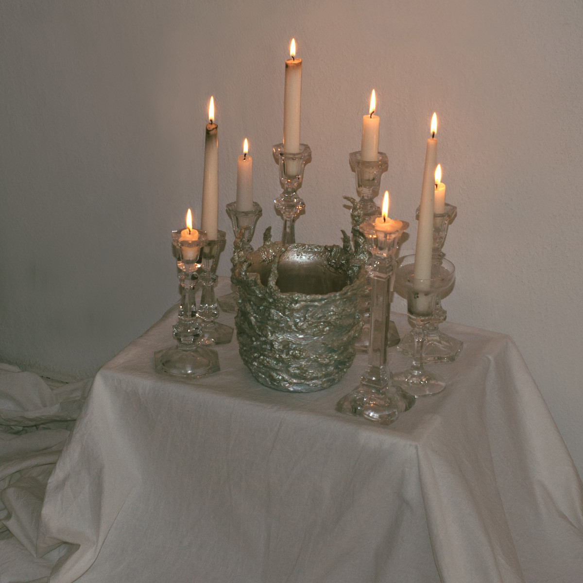 Alcorta's artistic practice fuses mediums including acrylic, organic material, upcycled objects, aluminium and clay. Transcending the boundaries between arts and crafts, her gothic-esque sculptures delve into the intricate role of magicality in ecodoom. Through her art, she explores the allure of sacralising destructive practices and the trust in supernatural forces as a means of collective (self-)deception. Simultaneously, her artefacts interrogate the transformative power of the otherworldly.